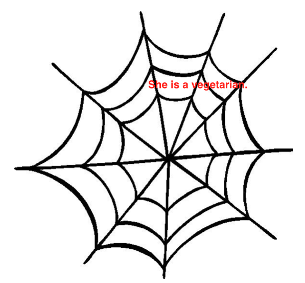 But now let’s do something more risky. Suppose that your best friend are out at a restaurant and you order some food. You have been friends with her for since elementary school and you know the ins and outs of her. You feel confident that you know her well and that she knows you well. Indeed, you treat her like a sister. She orders a dish and you notice that what she ordered is a vegetarian meal. You ask her why she ordered that particular dish when there were many other options that you considered better. She replies that she is a vegetarian, and that has been for a long time. In fact, she’s dismayed that you didn’t know this because she’s always ordered vegetarian meals for quite a while. So your original belief was like this…