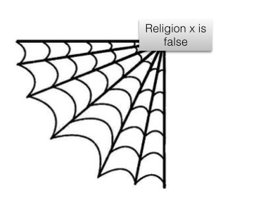 Why can’t you quickly change your beliefs “The religion of X is true” to “The religion of X is false/questionable/not accurate” as easily as changing the belief about your acquaintance’s favorite dessert? It is because the former informs your selfhood, your identity whereas the latter does not. The center of the web is gone. You cannot just simply replace a center with another center; you’ve got to rebuild it through your own experiences, worldview, and reason. Eventually, however, this new core belief will re-center you, and thus your identity.