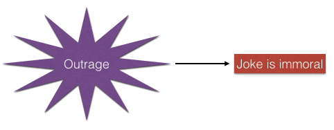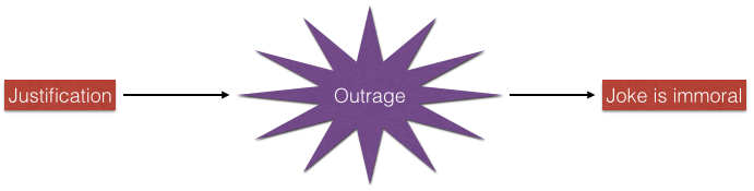 3. Offense is given too much weight. We usually take offense as a weighty moral consideration. Benatar thinks this is a mistake. The conventional wisdom is that if saying joke J is offensive, then saying joke J morally impermissible. Benatar finds the conventional view untenable. People express outrage to a joke, and that expression signifies that the joke is wrong. But what is doing the work? Usually, the sequence is like this: